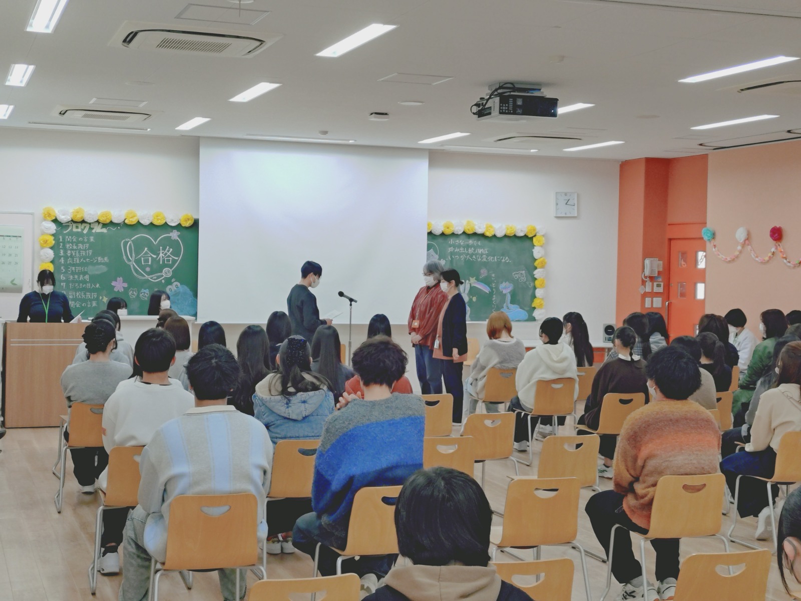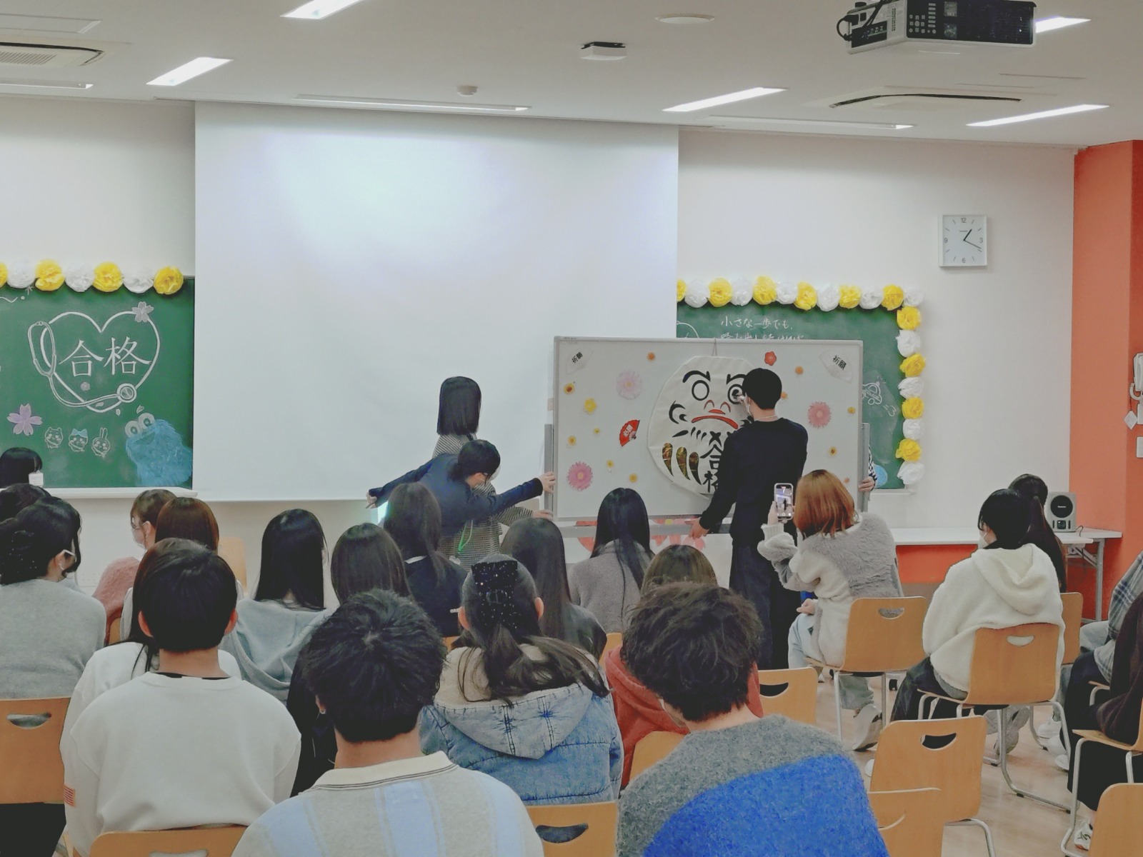 本日は、国家試験目前の3年生壮行会をおこないました。在校生の応援メッセージ動画や担任の熱いエール、3年生の決意表明、だるまの目入れなど、みんなのエールと3年生の決意みなぎる式になりました!